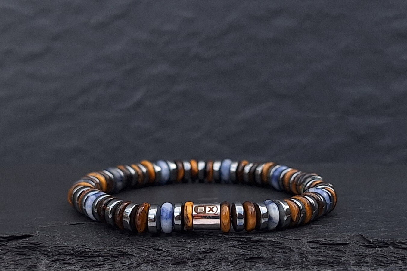 Ervaar de pure schoonheid en energie van onze natuurstenen Tijgeroog Sodaliet armband met Hematiet. Volledig handgemaakt in Nederland. Elke steen is zorgvuldig geselecteerd en met precisie verwerkt, waardoor je niet alleen een stijlvol en uniek accessoire draagt, maar ook een symbool van kracht, balans en positiviteit. Deze Tijgeroog Sodaliet armband bevordert onder andere zelfvertrouwen en zelfexpressie, terwijl Hematiet voor aarding en kracht staat.