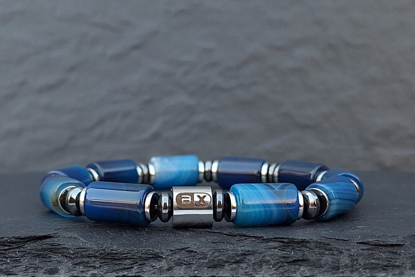 Cilinder blauw Agaat armband.
