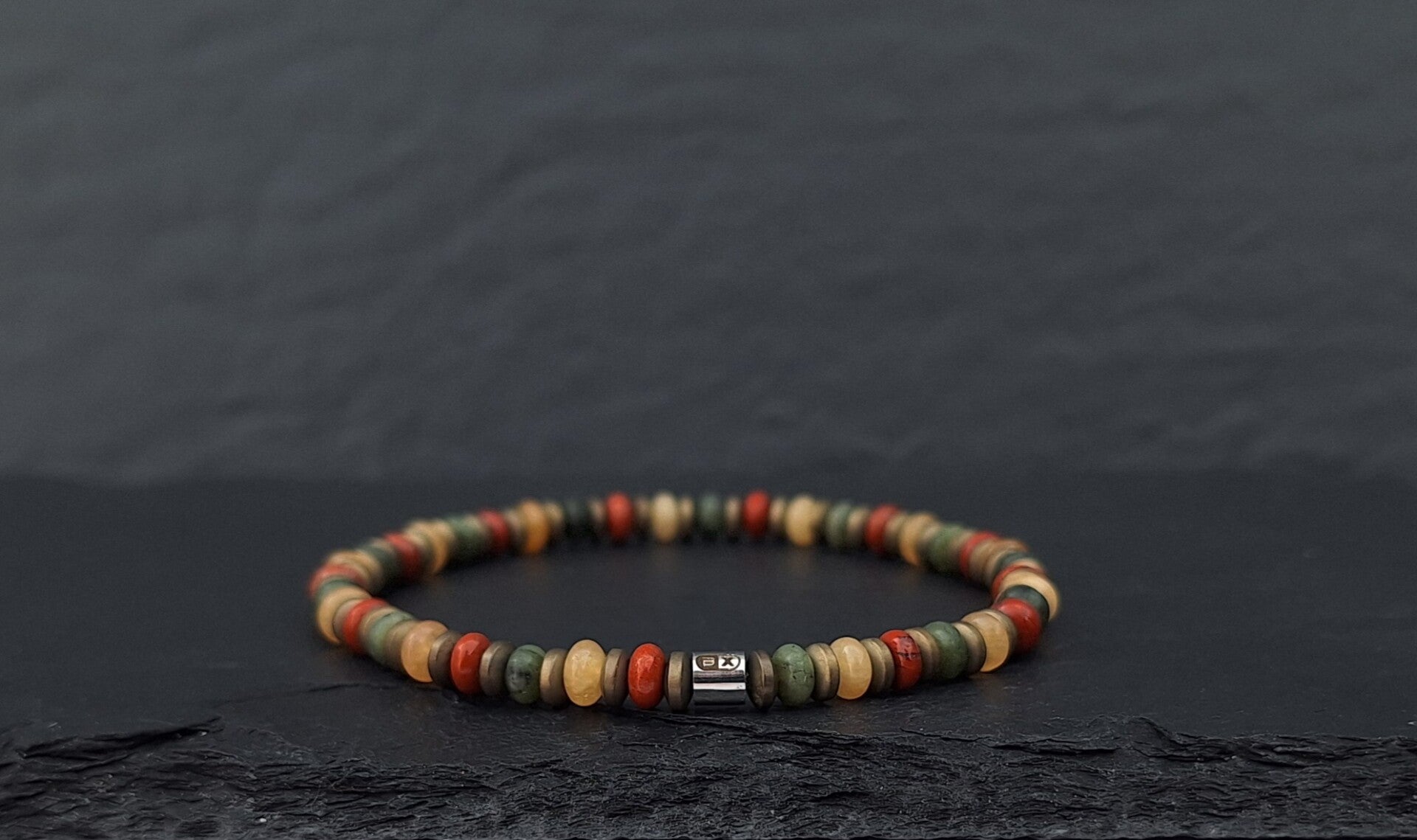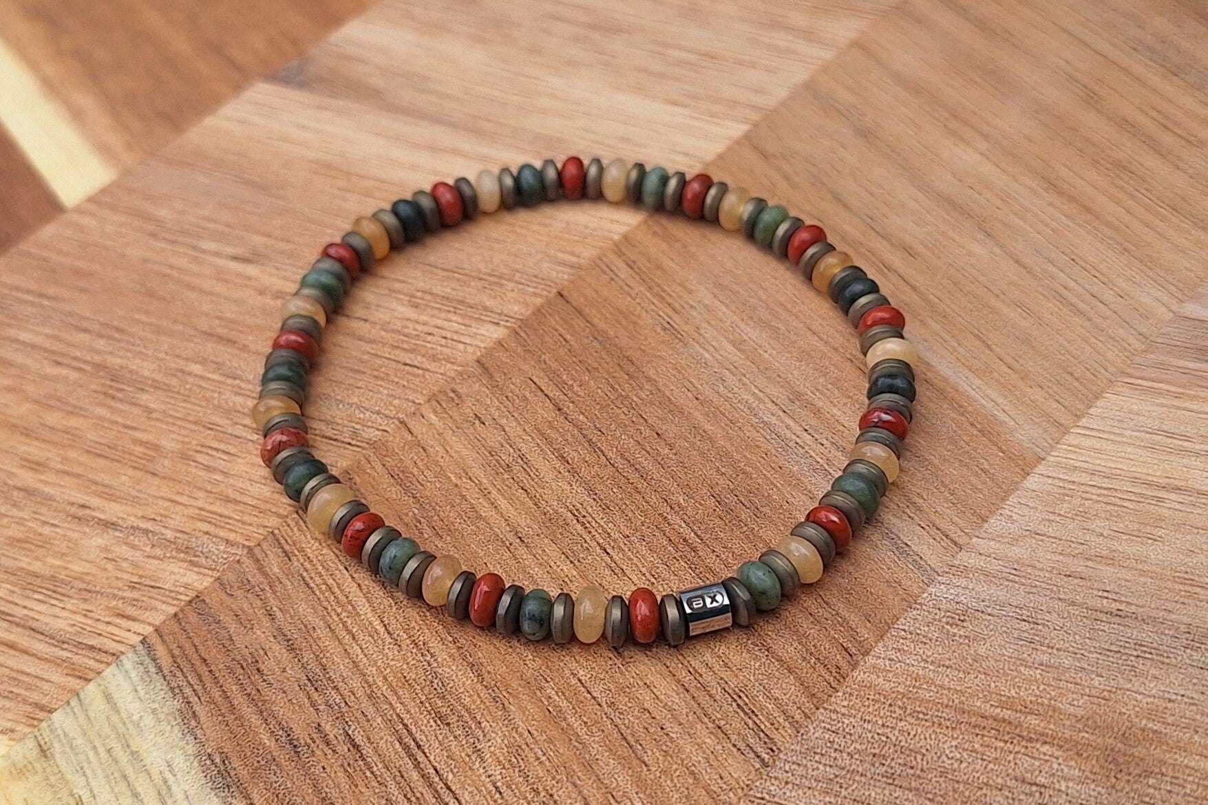 Met deze bijzondere Aventurijn, Jaspis natuursteen armband wordt persoonlijke groei gestimuleerd en brengt het moed en kracht in moeilijke situaties. Deze handgemaakte armband is geregen op een elastische band. Hij bestaat uit 4mm premium abacus kralen, speels afgewisseld met Hematiet rondelle kralen. Dankzij het elastische ontwerp is hij comfortabel te dragen en geschikt voor zowel mannen als vrouwen. Deze armband wordt geleverd in een luxe sieradenzakje – perfect als betekenisvol cadeau voor je partner of vriend(in), of verwen jezelf ermee!