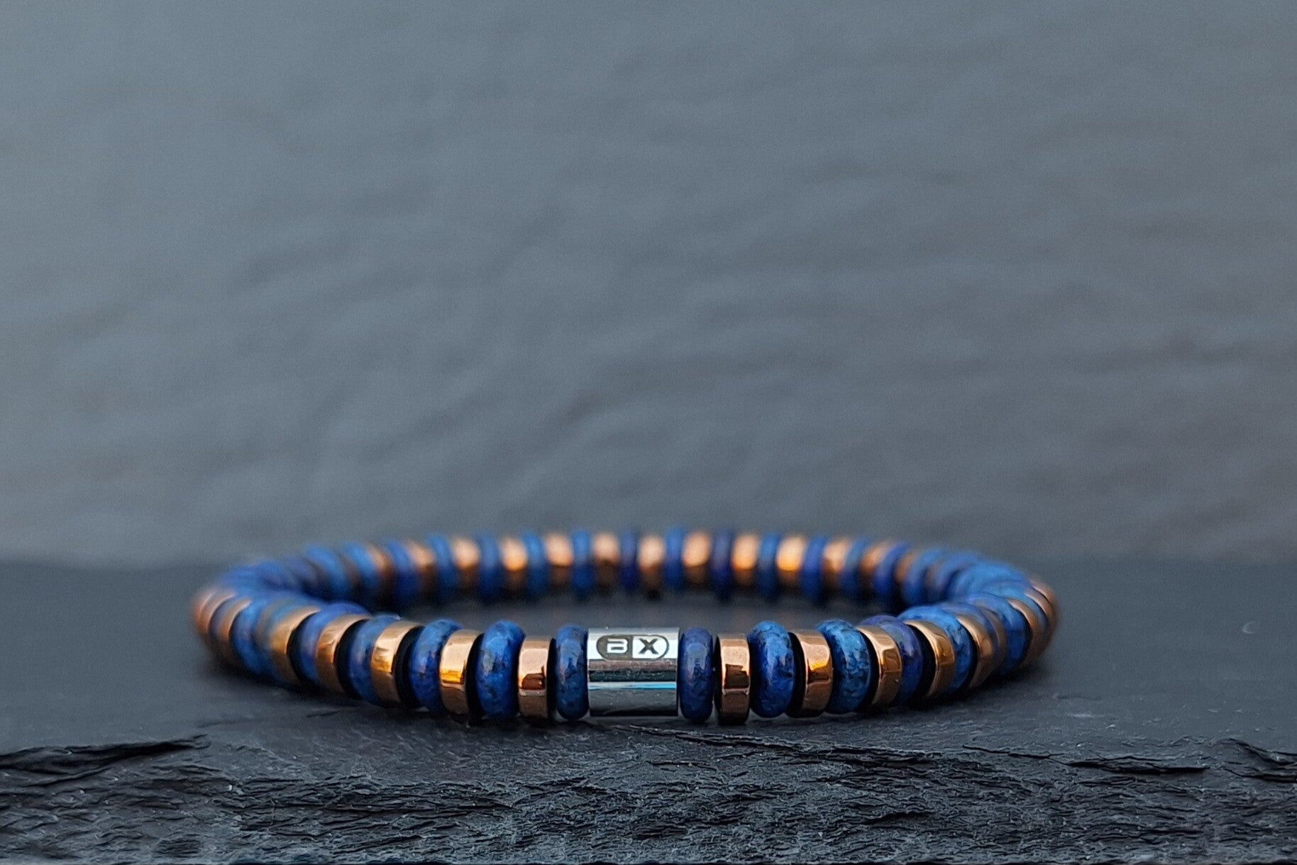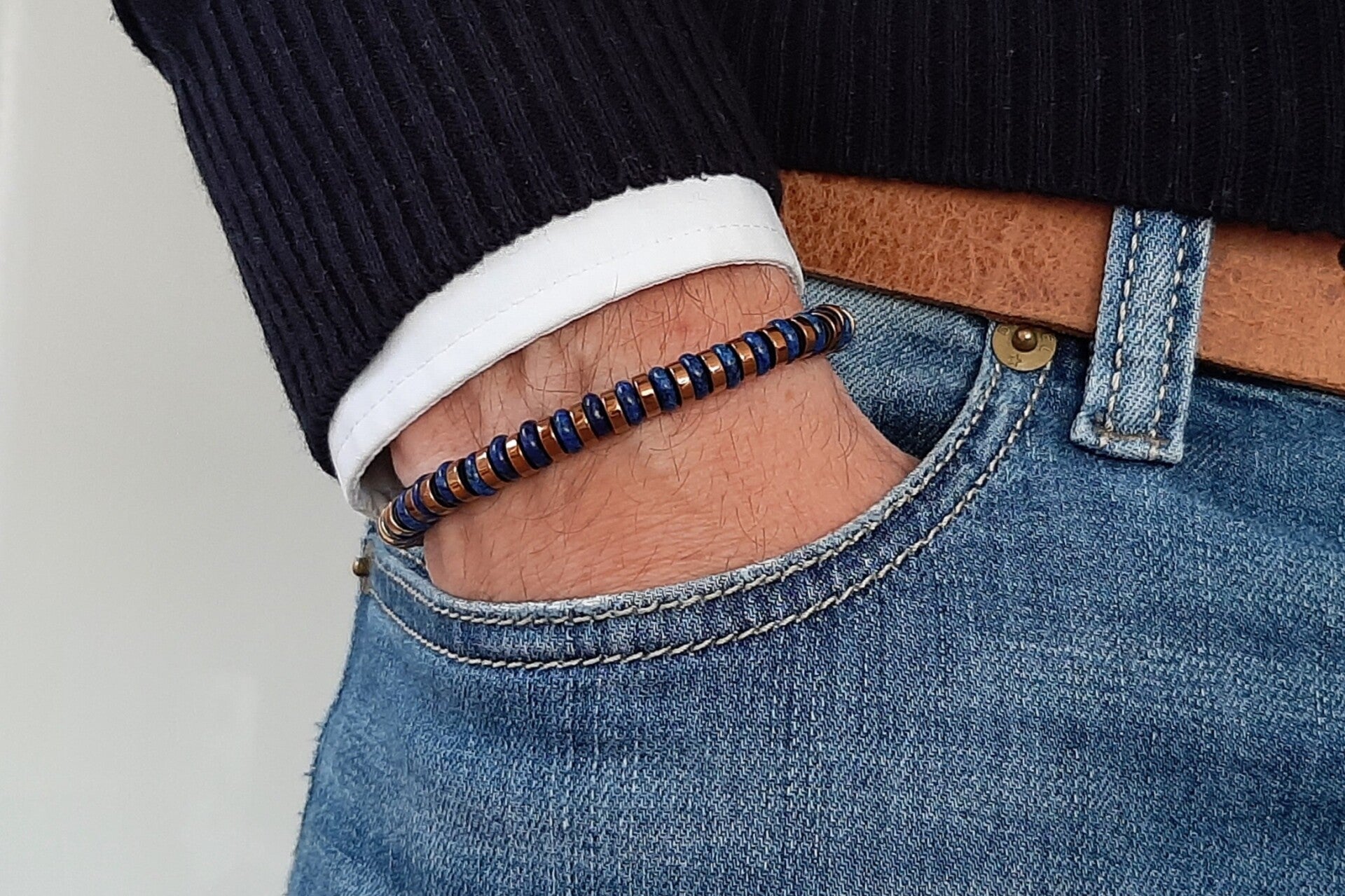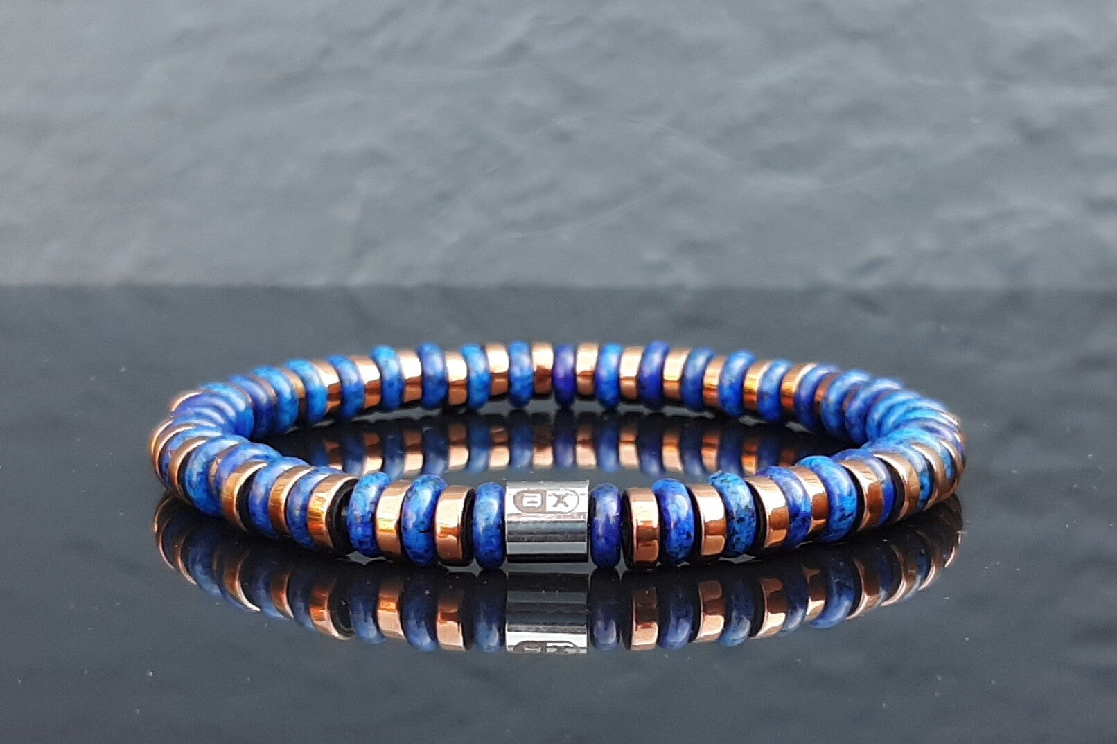Ervaar de pure schoonheid en energie van onze natuurstenen Lapis lazuli armband met Hematiet. Volledig handgemaakt in Nederland. Elke steen is zorgvuldig geselecteerd en met precisie verwerkt, waardoor je niet alleen een stijlvol accessoire draagt, maar ook een symbool van kracht, balans en positiviteit. Deze Lapis lazuli armband bevordert innerlijke wijsheid en communicatie, terwijl Hematiet voor aarding en kracht staat.