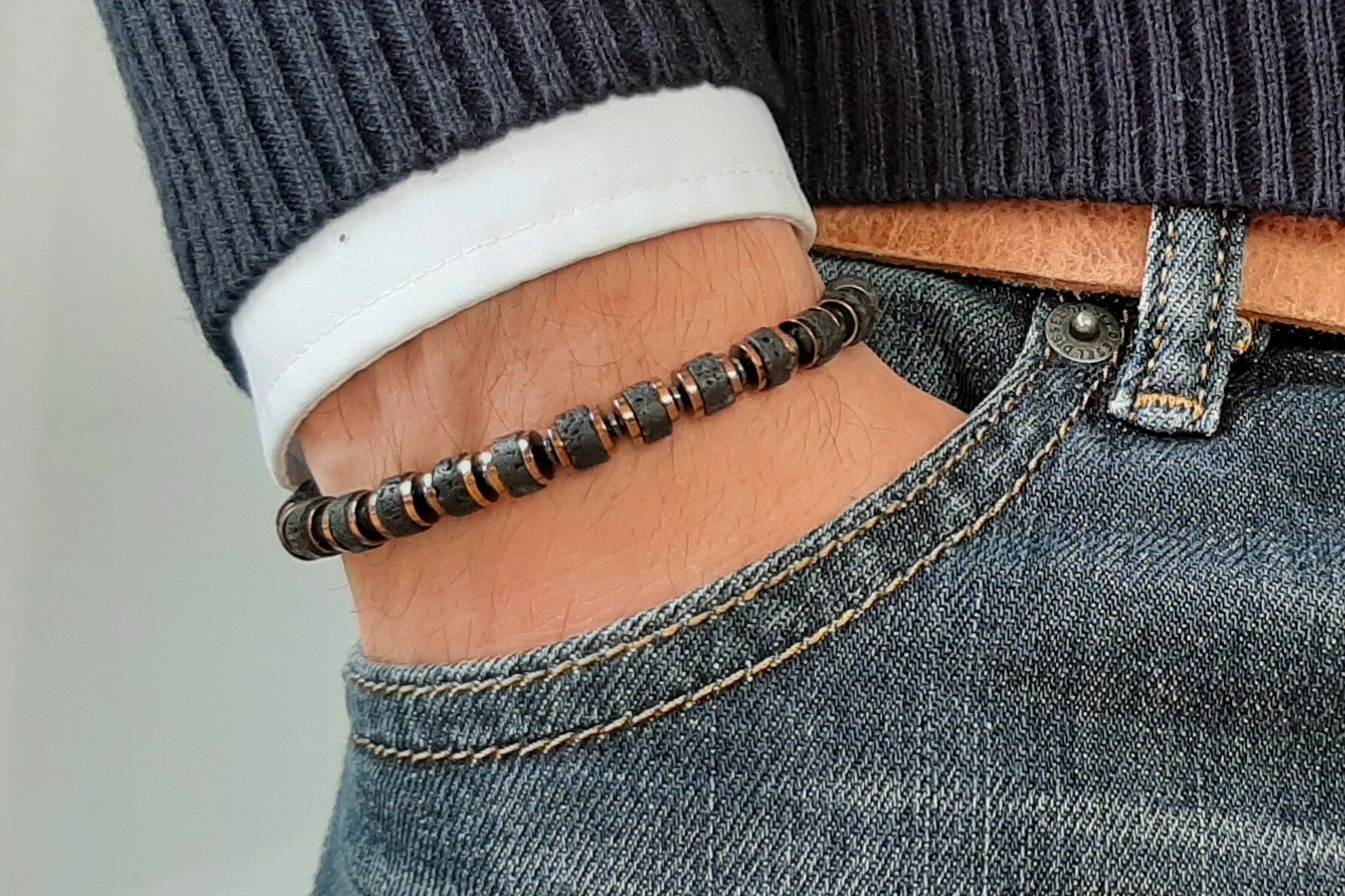 Ontdek de kracht van Lavasteen. Met deze prachtige natuursteen armband bevorder je innerlijke kracht. De armband is handgemaakt en geregen op een elastische band. Hij bestaat uit 6mm rondelle kralen, subtiel afgewisseld met Hematiet rondelle kralen. Dankzij het elastische ontwerp is hij comfortabel te dragen en geschikt voor zowel mannen als vrouwen. Deze armband wordt geleverd in een luxe sieradendoosje – perfect als betekenisvol cadeau voor je partner of vriend(in), of gewoon om jezelf te verrassen!