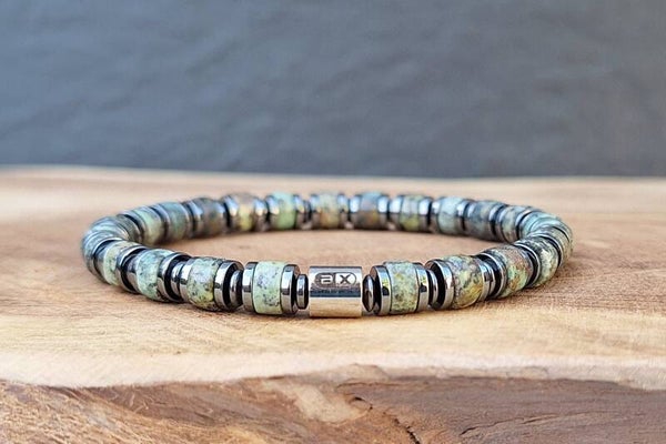 Ontdek de kracht van Afrikaans Turkoois. Met deze prachtige natuursteen armband breng je wijsheid en persoonlijke groei in je leven. De armband is handgemaakt en geregen op een elastische band. Hij bestaat uit 6mm rondelle kralen, subtiel afgewisseld met Hematiet rondelle kralen. Dankzij het elastische ontwerp is hij comfortabel te dragen en geschikt voor zowel mannen als vrouwen. Deze armband wordt geleverd in een luxe sieradendoosje – perfect als betekenisvol cadeau voor je partner of vriend(in), of gewoon om jezelf te verrassen!