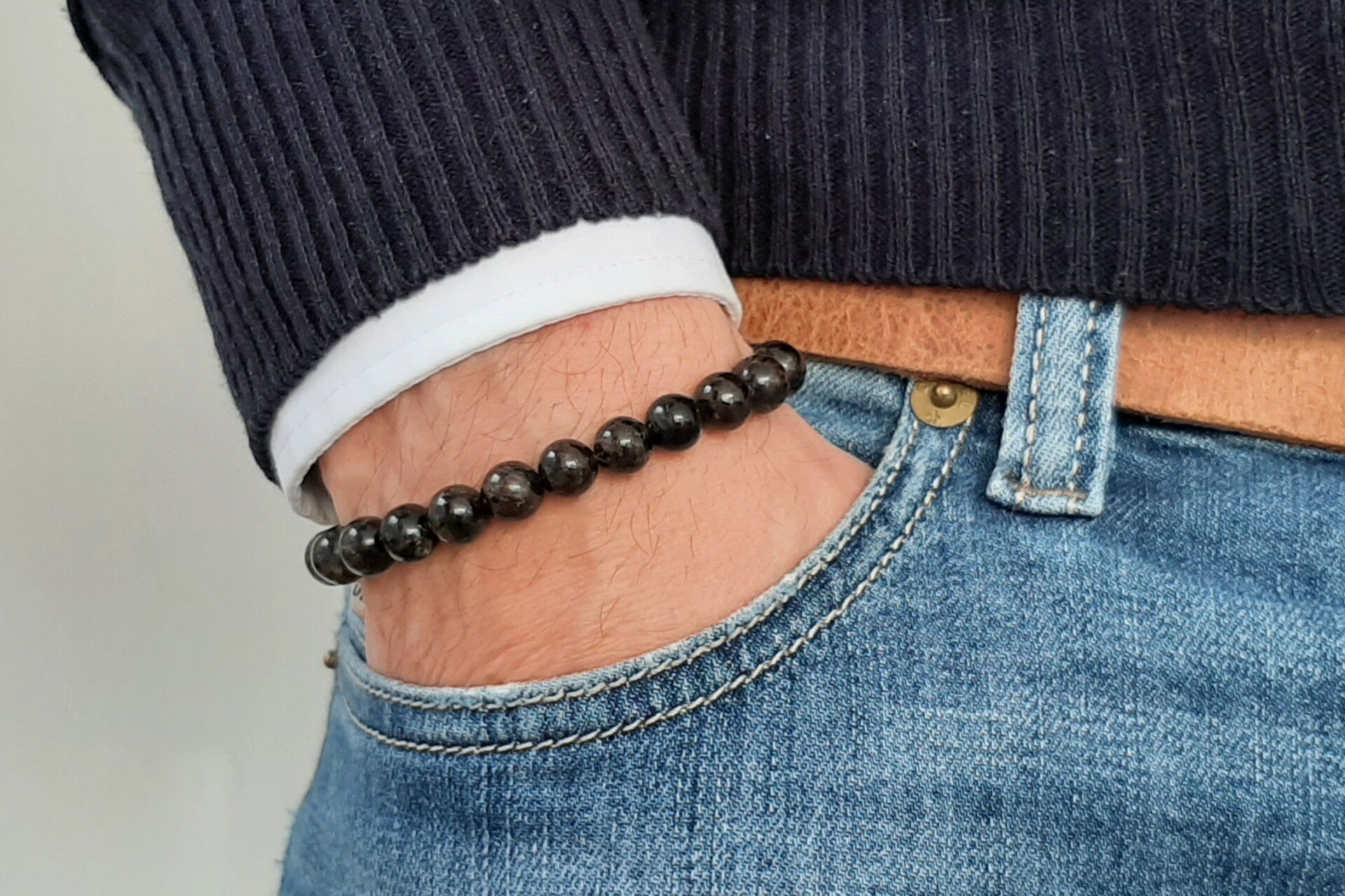 Ervaar de diepe kracht en tijdloze schoonheid van onze klassieke Astrofylliet kralen armband. Met zijn prachtige zwarte tinten straalt deze armband rust en diepgang uit. De zorgvuldig geselecteerde 8mm ronde Astrofylliet kralen symboliseren zelfinzicht en transformatie.